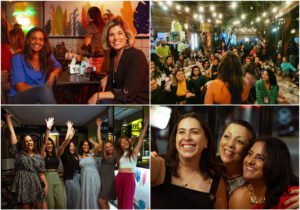 Cenas dos happy hours de 2022 e 2025 do Misses at Work | Imagens Acervo Pessoal