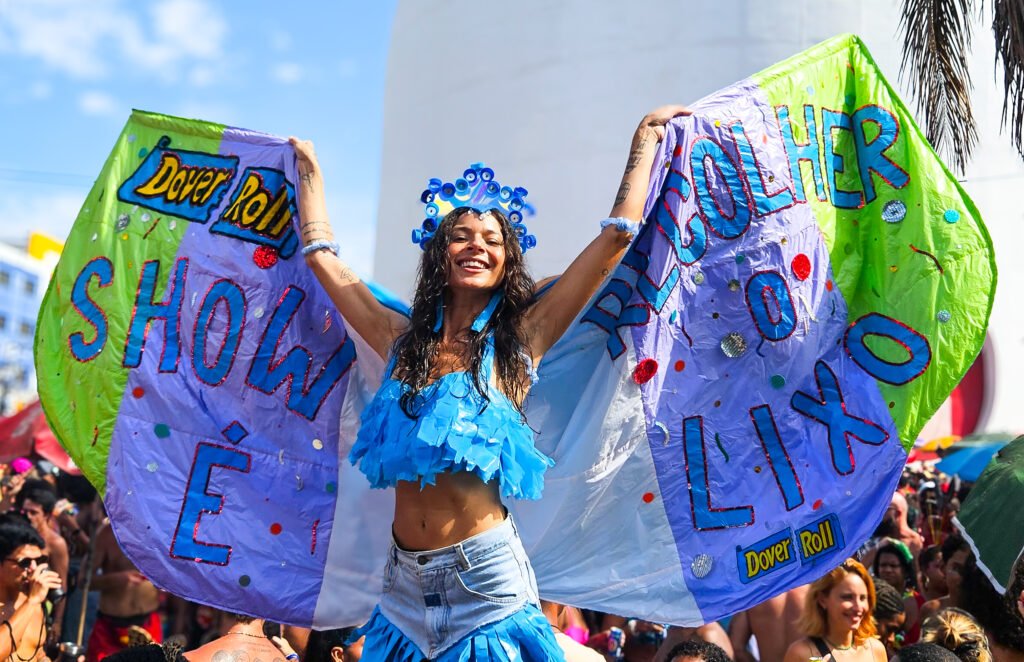 Unindo arte e cidadania, a iniciativa levou para o centro da folia o lema “SHOW É RECOLHER O LIXO”, por meio de uma pernalta com figurino confeccionado com sacos para lixo, acompanhada de um estandarte que reforçam a mensagem de forma visual e impactante.